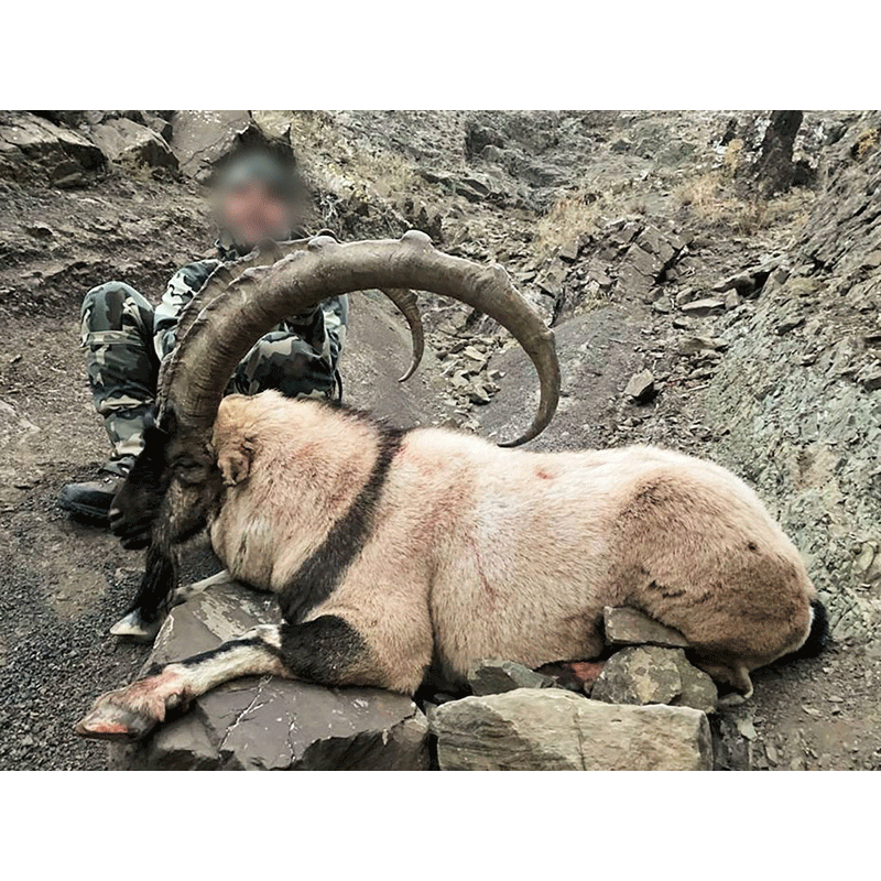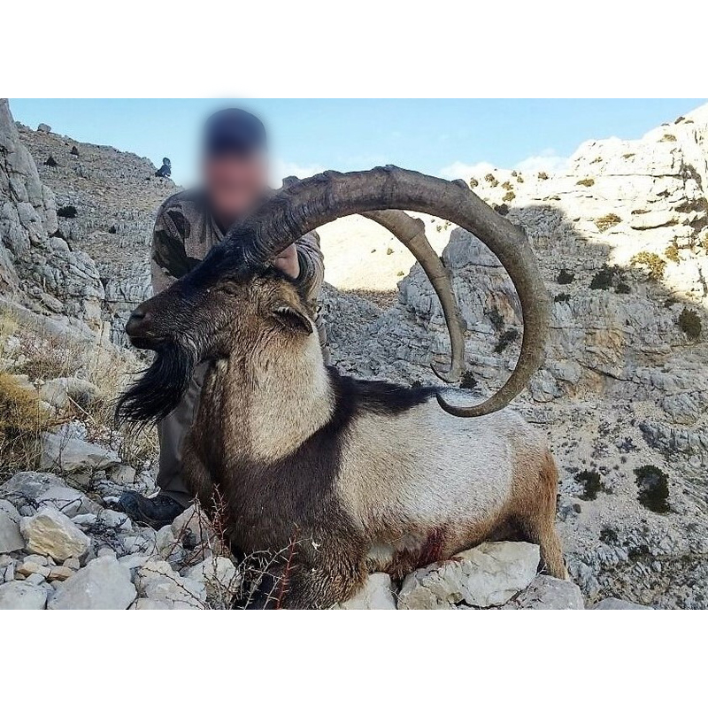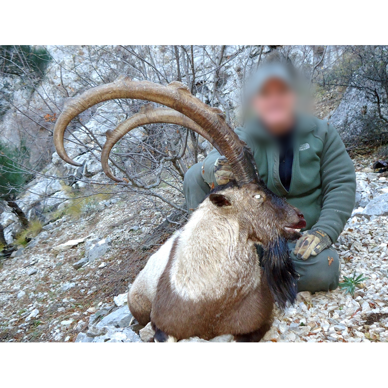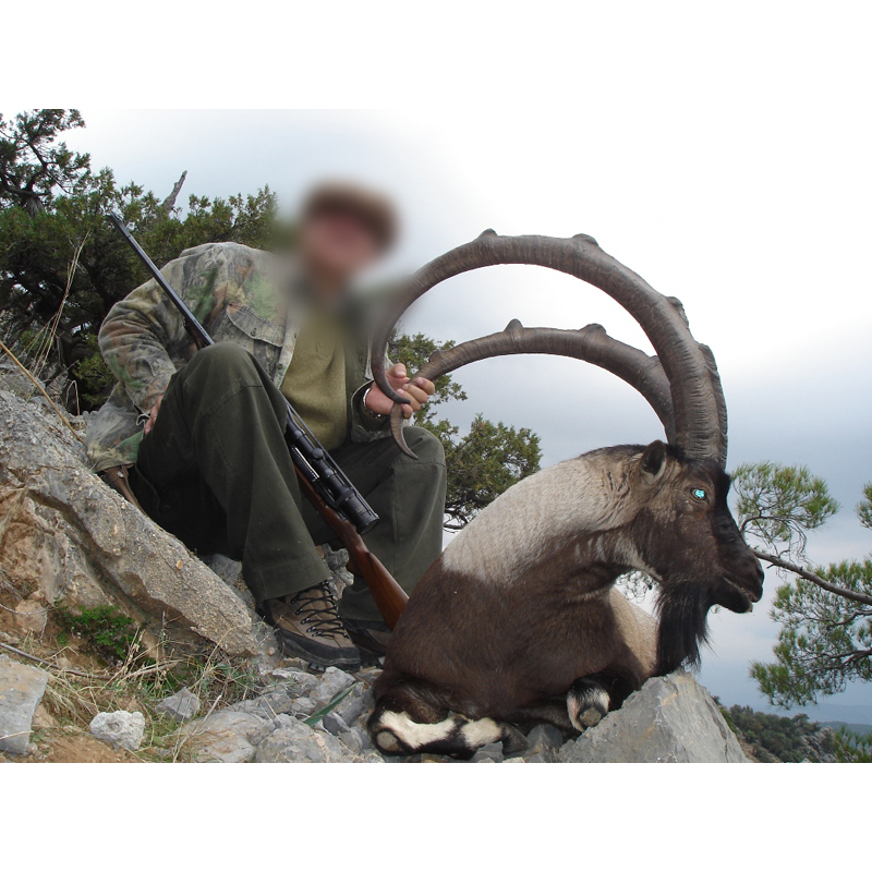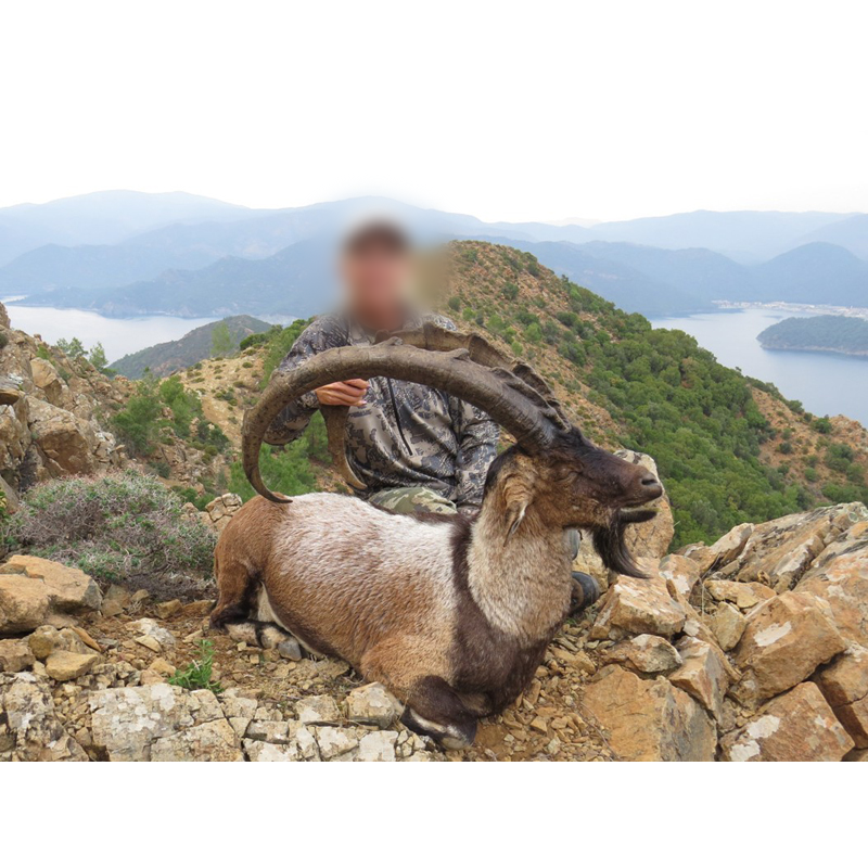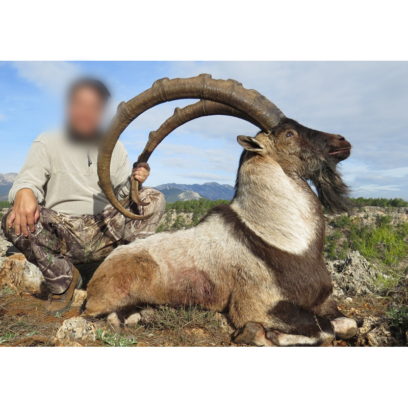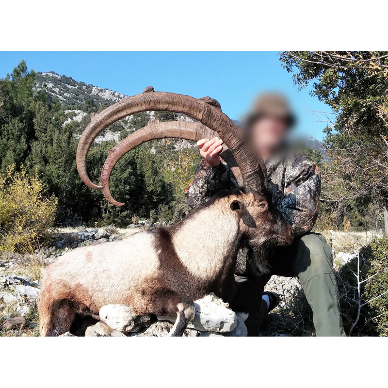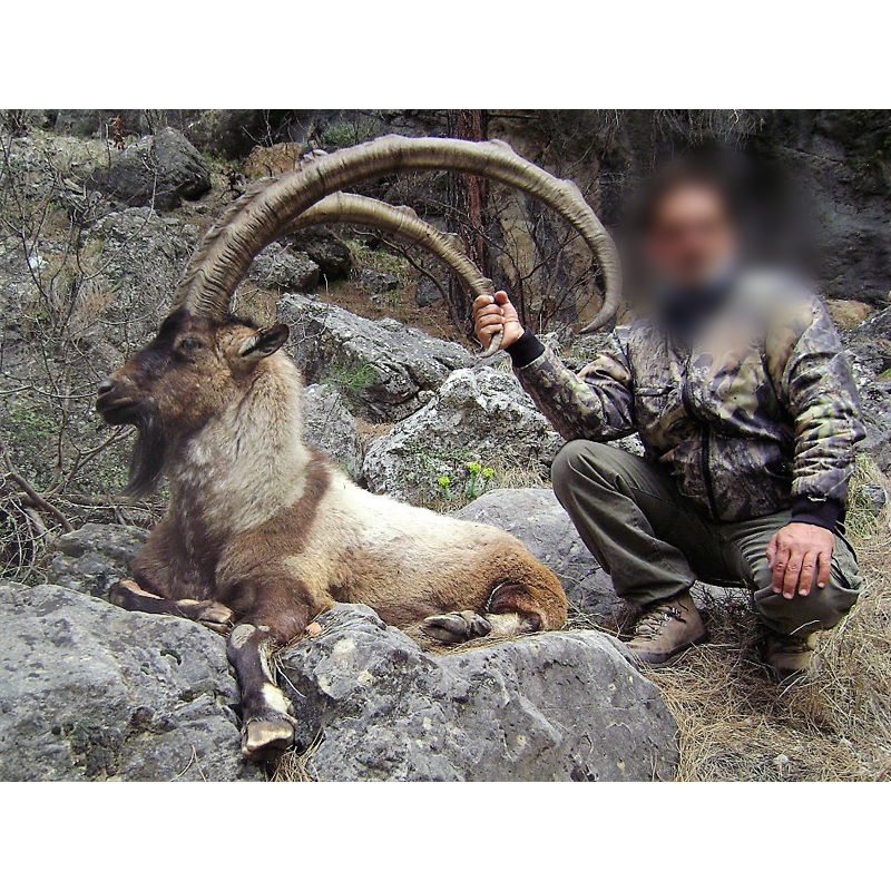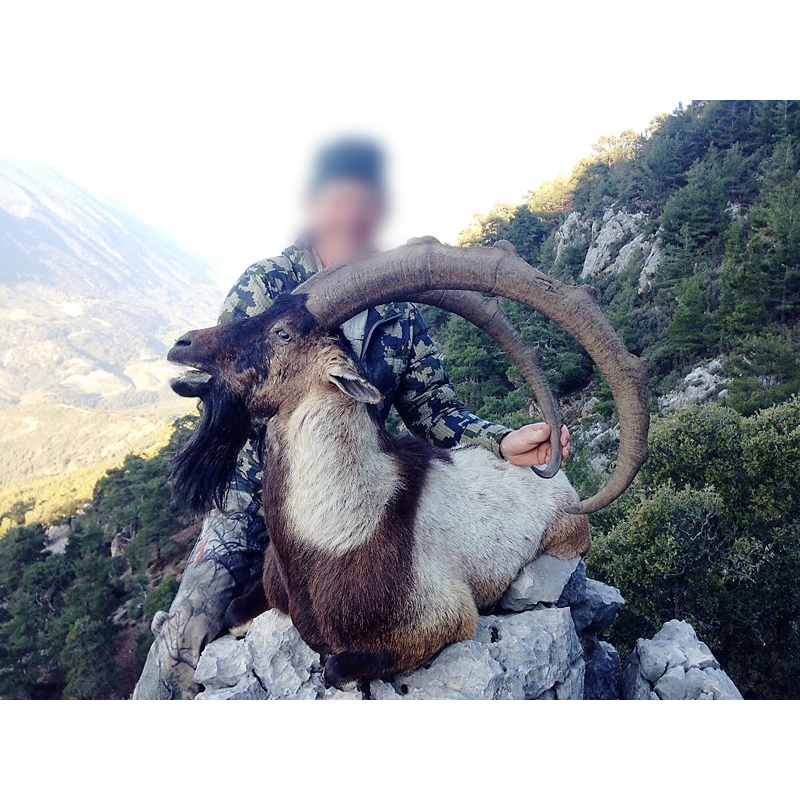 trophée d ibex bezoar et chasseur dans les montagnes turques